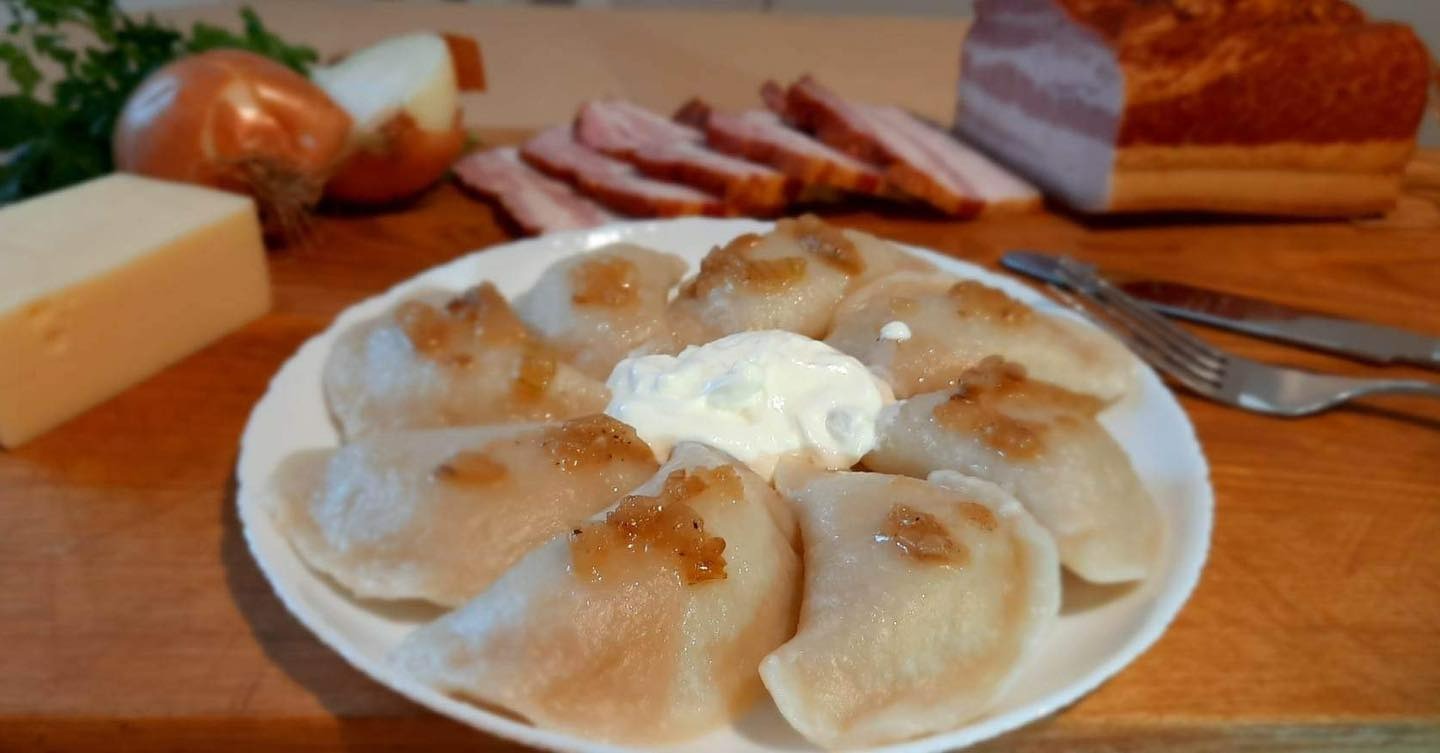 Pierogi z ziemniakami, pieczarkami i grzybami